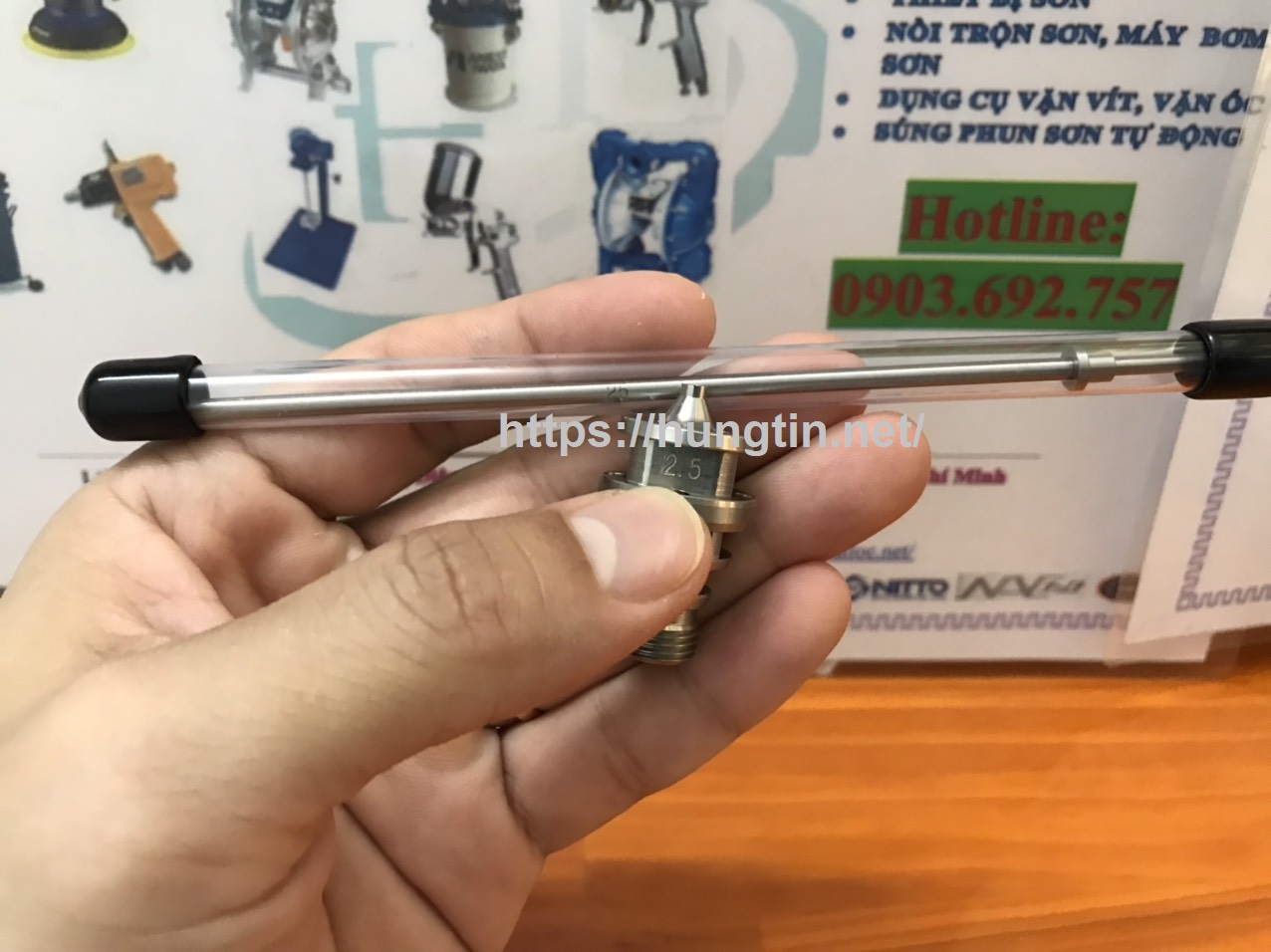 - Ứng dụng: Lắp vào súng PRONA R775 để phun sơn nón bảo hiểm, phun gỗ, phun đồ gỗ cao cấp, phun sơn ô tô, phun sơn xe máy, phun lên kính, phun ngành thực phẩm, phun bao viêm viên thuốc ngành dược phẩm, phun các sản phẩm cơ khí,...