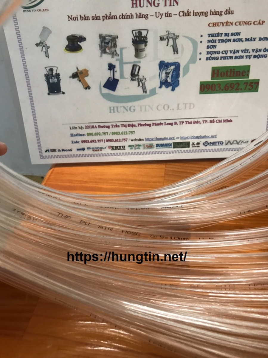 Ứng dụng: Dây hơi THP 6.5x10mm PUC6510 dùng nhiều trong ngành phun sơn Đồ gỗ, phun sơn nội thất, phun sơn loa thùng, phun sơn ô tô, phun sơn xe máy, phun sơn lên kính, phun thực phẩm, phun sơn các sản phẩm cơ khí, phun sơn kèo thép,...