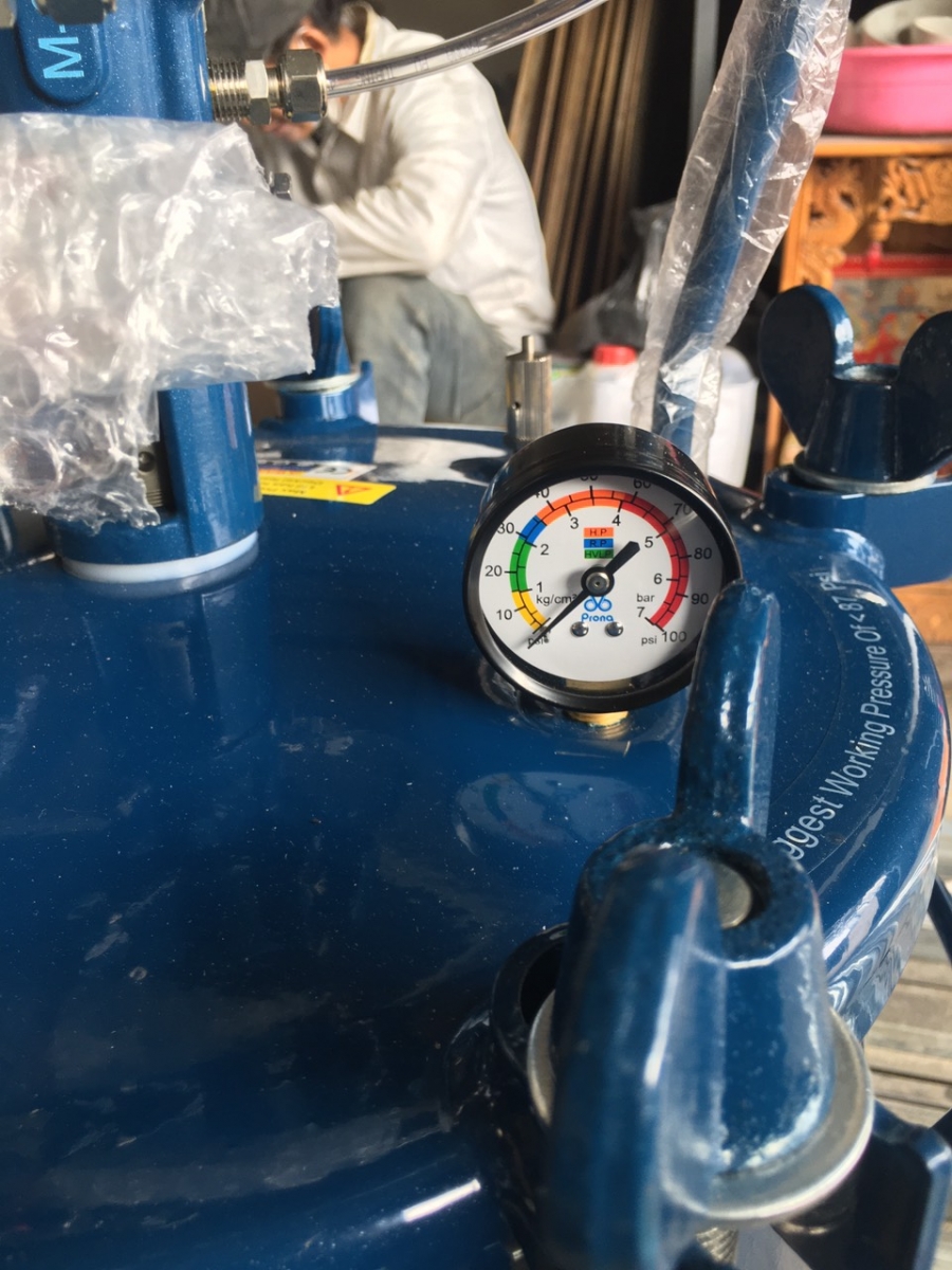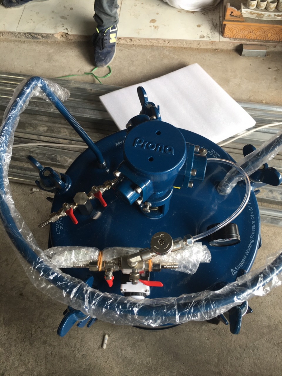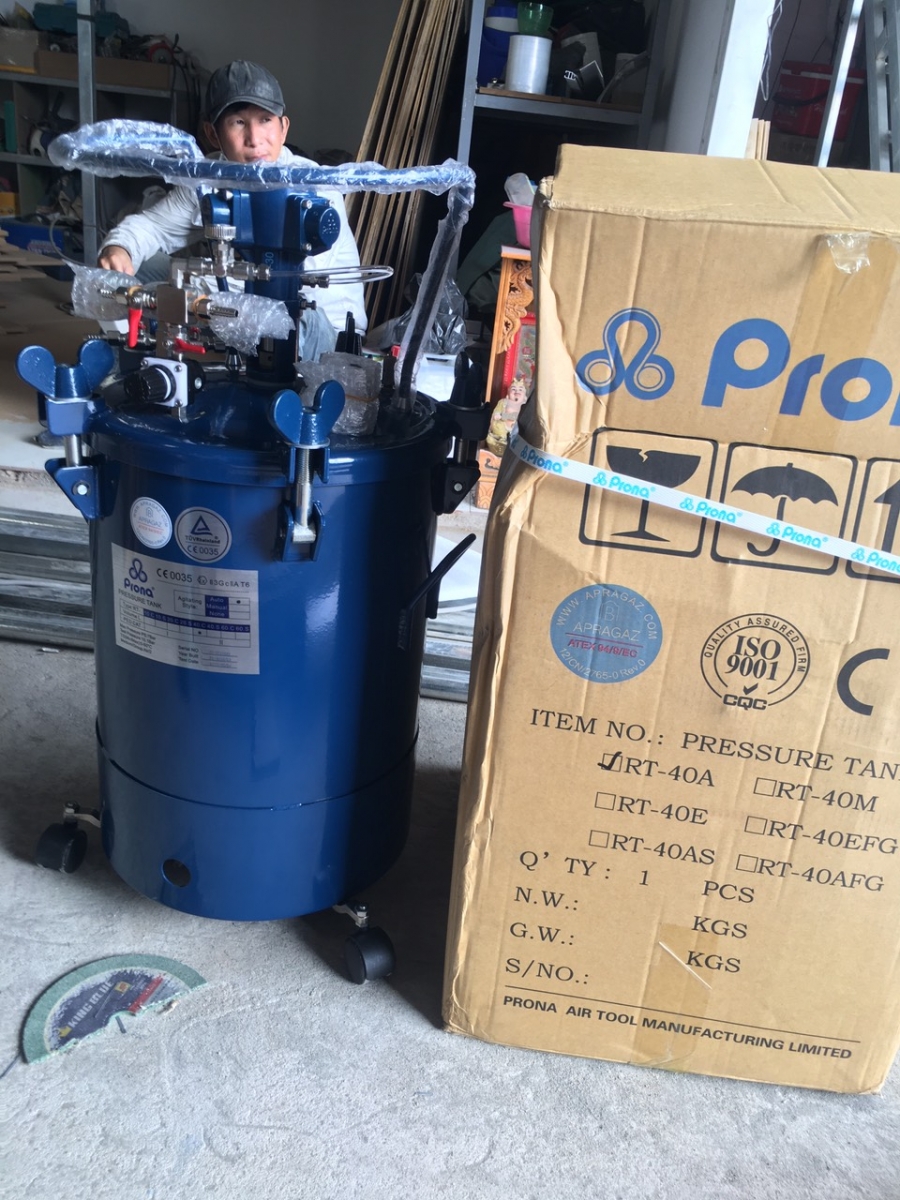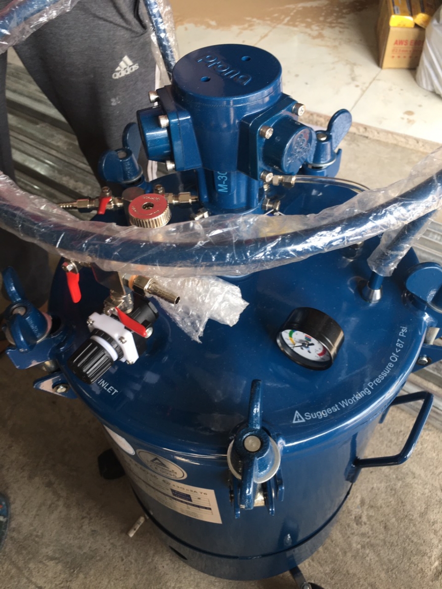 - Nồi trộn sơn hoạt động bằng khí nén, Khí được nén vào bình để tống sơn ra.