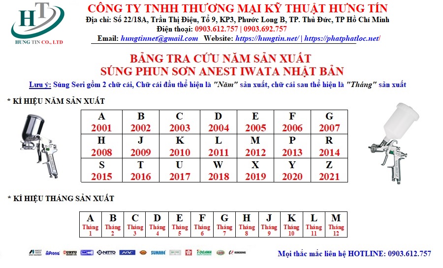 ♦ Bảng tra cứu seri của Anest Iwata để biết năm tháng sản xuất súng Anest Iwata