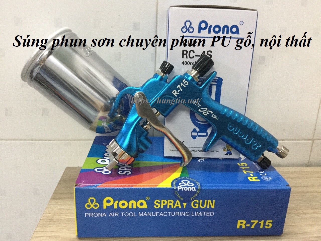 (Súng phun sơn PRONA R715: chuyên phun sơn PU nội thất, gỗ, phun sơn xe máy,...)