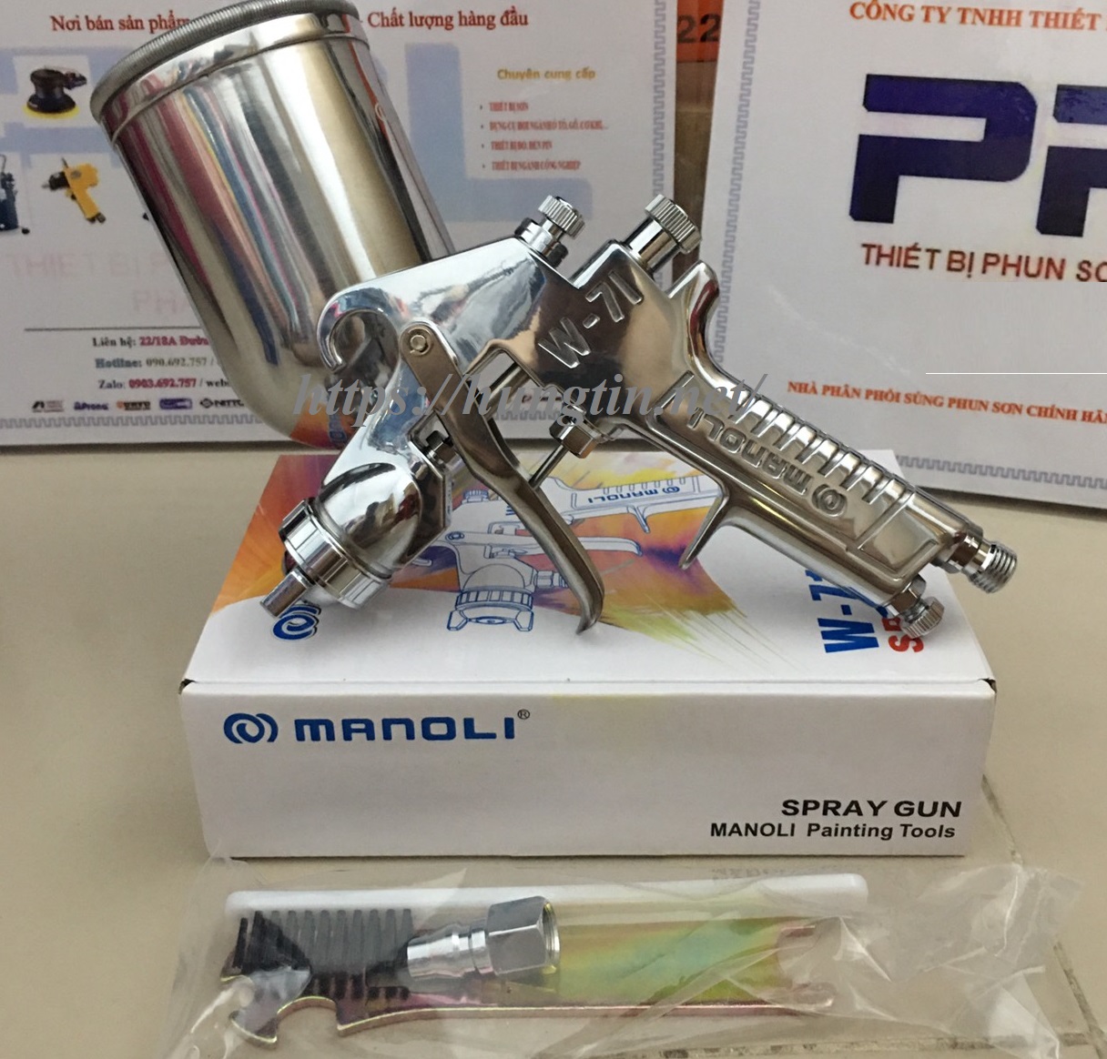 (Súng phun sơn đài loan MANOLI W71: chuyên phun sơn PU nội thất, gỗ, phun sơn xe máy, ô tô,...)