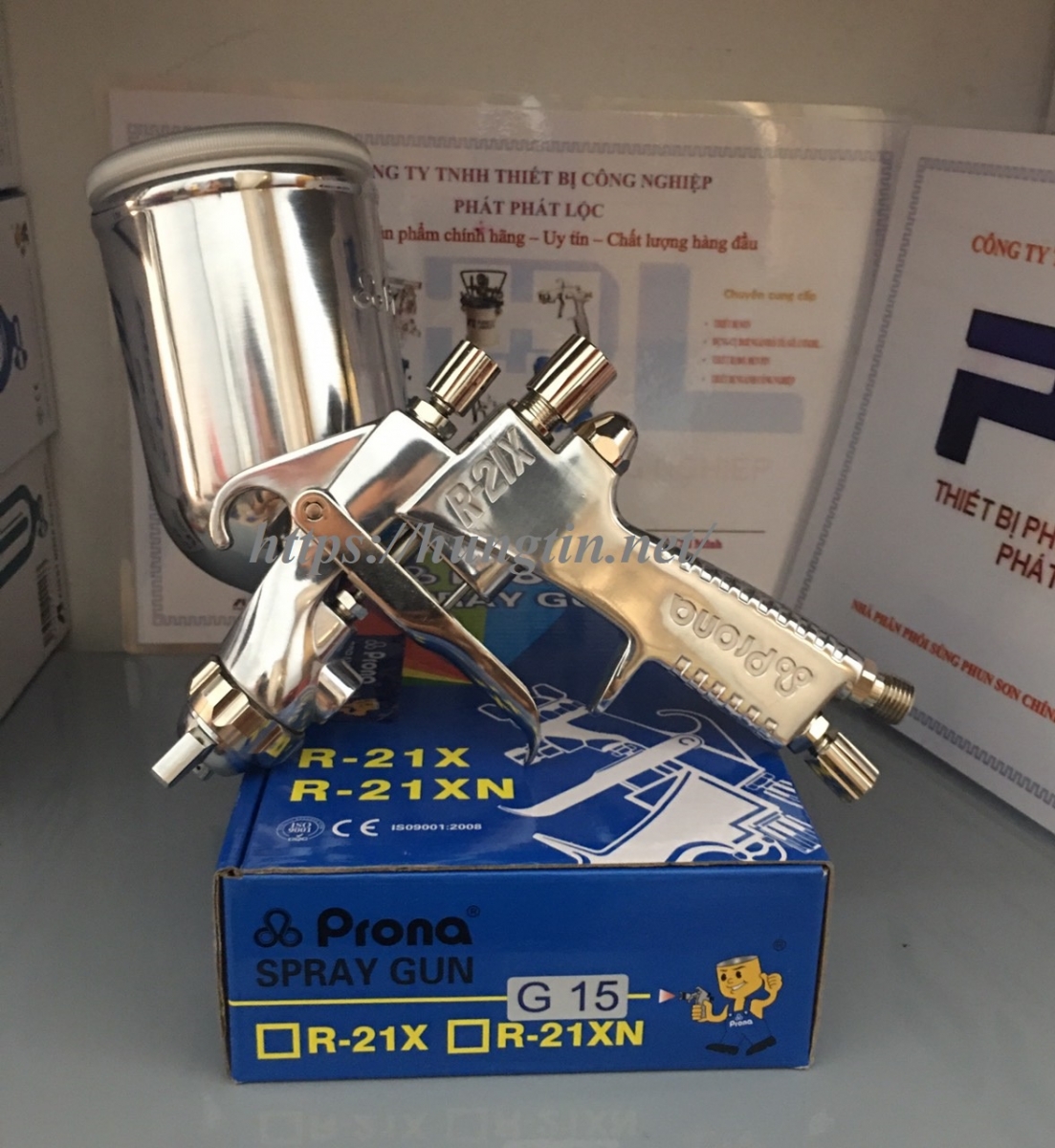 (Súng phun sơn đài loan PRONA R21X: chuyên phun sơn PU nội thất, gỗ,...)