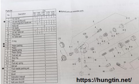 Các model sử dụng như: iwata WA-101, WA-200, RA-130, RA-230, RA60, RA-80,...