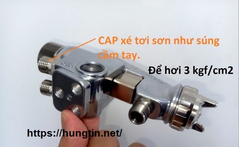 Để hơi xé sơn vào CAP trung bình là 2.5 kgf/cm hoặc tùy vào súng. Dùng hơi ống 5x8mm màu xanh.