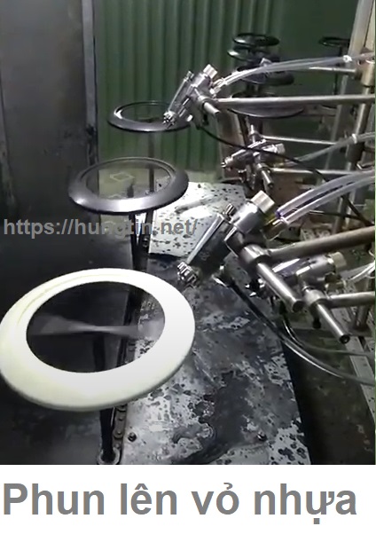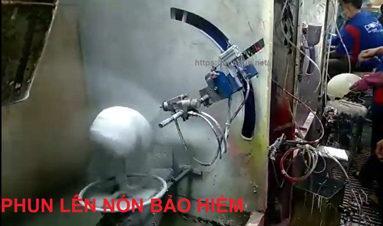 - Phun sơn tự động lên xoong chảo, nón bảo hiểm.