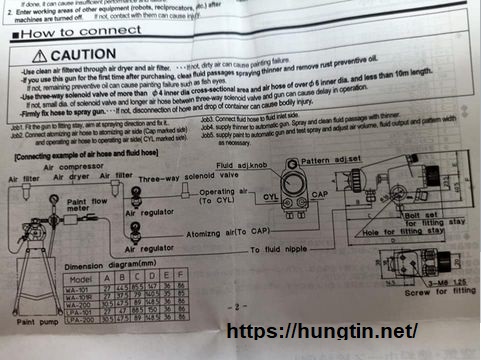 Trong bài viết này sẽ đưa ra trường hợp phổ biến nhất là hai đường hơi vào và một đường dung dịch vào súng phun sơn tự động.